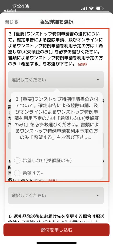 会社員(確定申告なし)・5個以内の自治体に寄付の場合は、「希望する」を選択します!