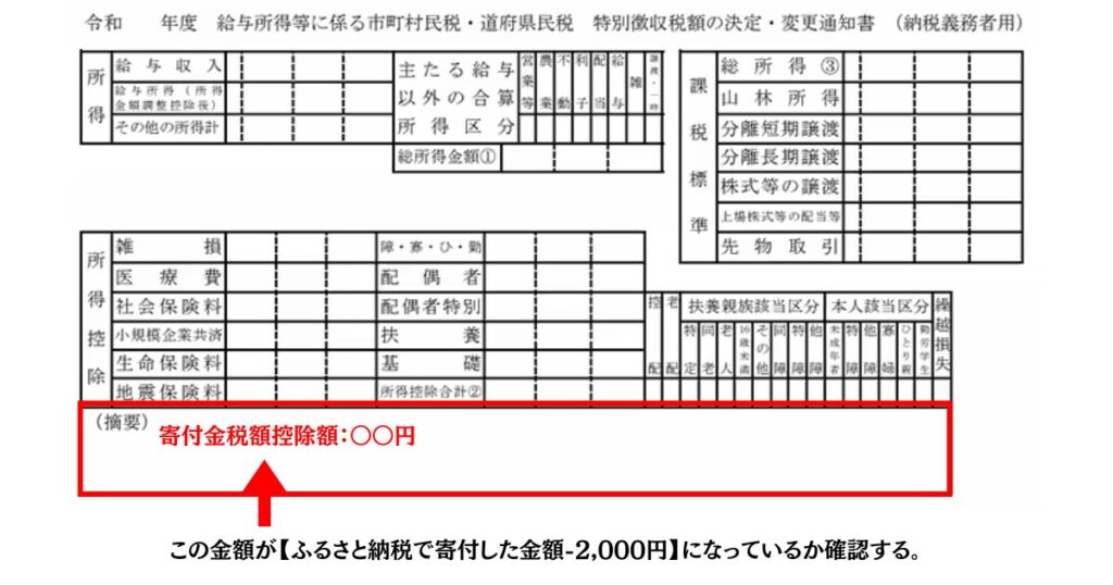ワンストップ特例制度を使った場合、翌年6月ごろに届く「住民税決定通知書」で控除額を確認できます。