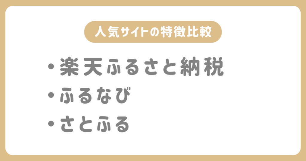 人気サイトの特徴比較(楽天・ふるなび・さとふる)