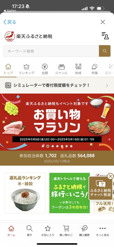 私が使っている「楽天ふるさと納税」では、楽天ユーザーだと20%の還元も狙えます。