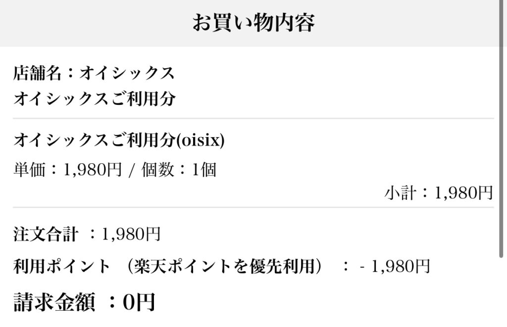 オイシックスの注文も楽天ポイントが使えたので、注文のハードルもぐっと下がりました!